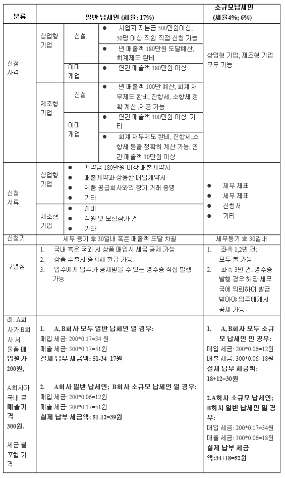 중국 부가세(증치세) 납세의무자별 구분
